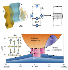 More is under way, with another high field expedition coming up shortly. UTe2 is a particularly interesting material to study, because it exhibits at least four distinct superconducting states, between which it can be switched by varying field, pressure or temperature, some of these states are resilient to very high applied fields, reaching nearly 70 T for some directions, indicating triplet pairing, it has a surprisingly simple Fermi surface geometry, and super-clean crystals have recently become available.